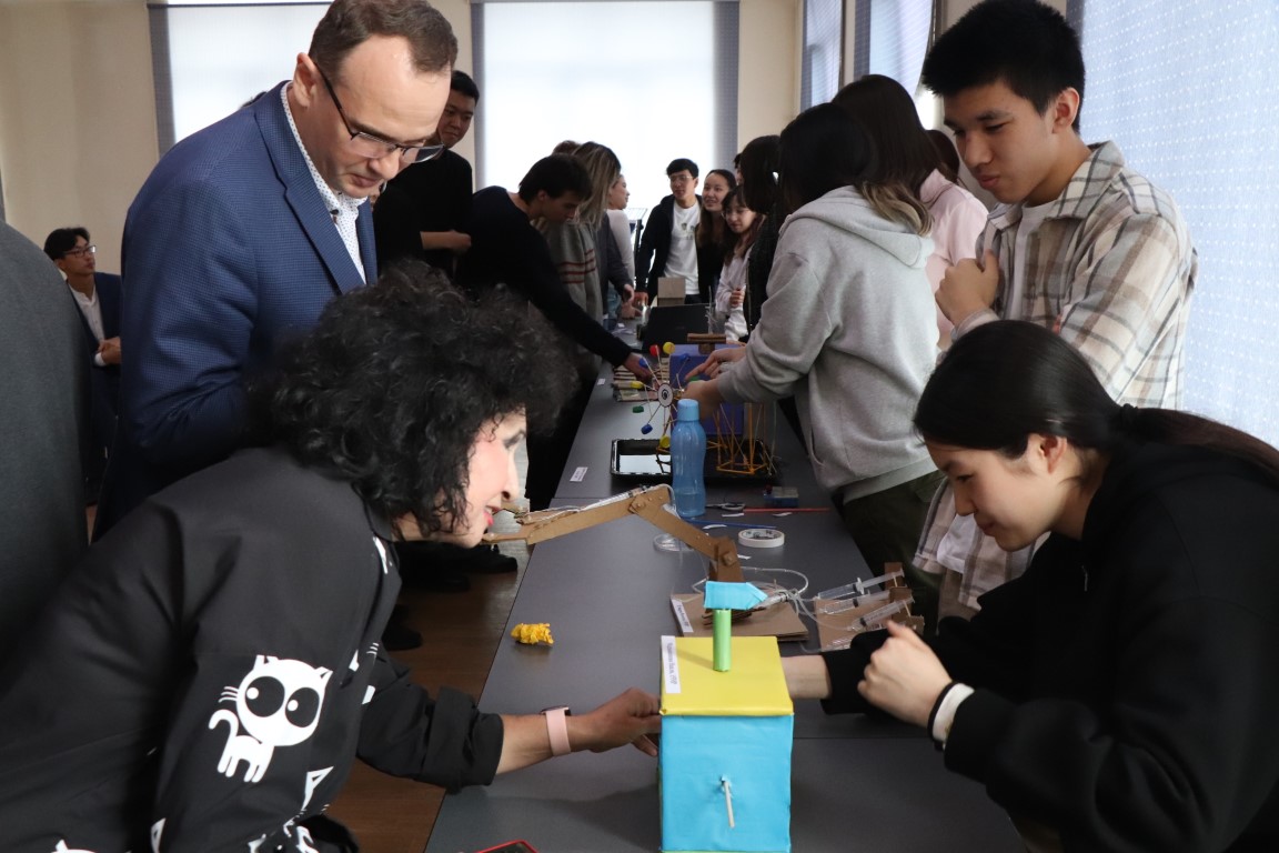 Почетными гостями выставки были: Петрухин Александр Александрович, руководитель редакции республиканского журнала «Современное образование», Жандос Жумабай, заместитель главного редактора республиканского журнала «Современное образование», Исаков Кадыржан Адилович, член академии Наук РК, доктор технических наук, академик. Все представленные проекты были подробно рассмотрены, отметичен инновационный характер моделей, соответствие современным вызовам науки, сложность исполнения. Больше все откликов со стороны экспертной комиссии получили проекты: гидравлический кран, мини-электростанция и умный дом, работающий на солнечных батареях. Выставка показала интерес студентов к науке и техническому творчеству и станет нашей доброй традицией. Как сказал великий Леонардо да Винчи «Не оборачивается тот, кто устремлен к звездам».